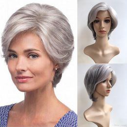 Art Und Weise Kurz Silbergrau Afro Perucke Gerade Synthetischer Bob Perucken Naturliches Haar Fur Alte Frauen Keiner Spitze Frisur Auf Lager