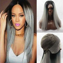 Synthetische Glattes Haar Ombre 1b Medium Grey Short Promi Frisuren Basismaterial Schweizer Spitze Hitzebestandige Sinteticas