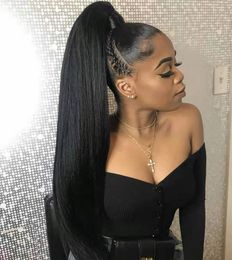 Grosshandel Wrap Around Schwarzen Frisuren Pferdeschwanz Verworrene Gerade Grobe Yaki Kordelzug Pferdeschwanz Haarteil Brasilianische Haarspangen In